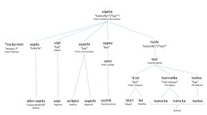 Nahuan: The relationship between the Nahuan form and the Minor Sonoran forms is obscured by two things: 1. That soundchanges has reduced *sopi to the syllable tsi- and tso- (intermediary steps *tsoi < *tsohi) which only appears in compound forms tsina:ka, tsona:ka and tsotso. 2. That the forms with tso are limited to a handful of dialects, and the best known form is the one with tsi-, which looks less likely to be related to *sopi than *tso. Nevertheless, the changes follow regular patterns, and even explain the unexpected lack of palatalization in the Nahuan root tsi. Recognizing these facts allows us to see the Nahuan and Sonoran form as deriving from a single proto-form.
